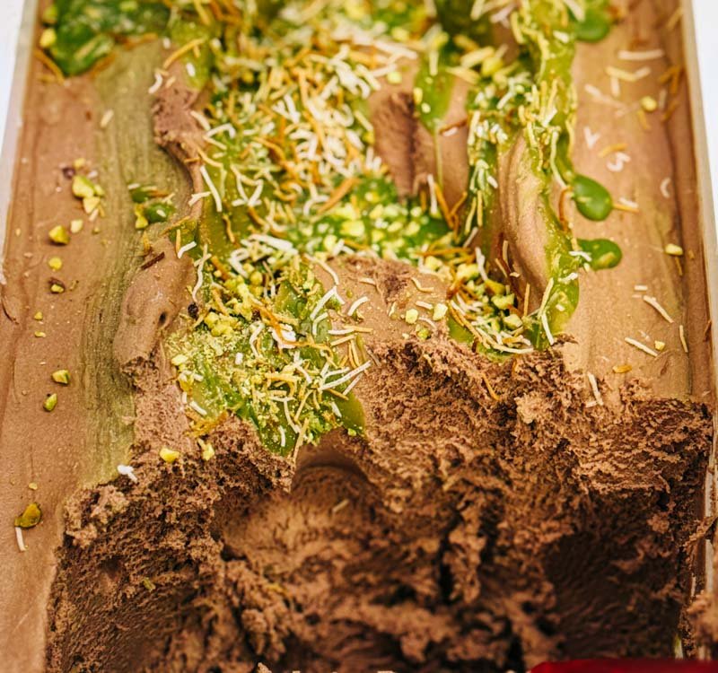 We can hold up to ten flavours at a time in our display cabinet and always try and carry at least three vegan options. As well as the flavours below we can produce plant-based varieties of Pistachio, Bacio, & Belgian Chocolate. Please ask in shop.